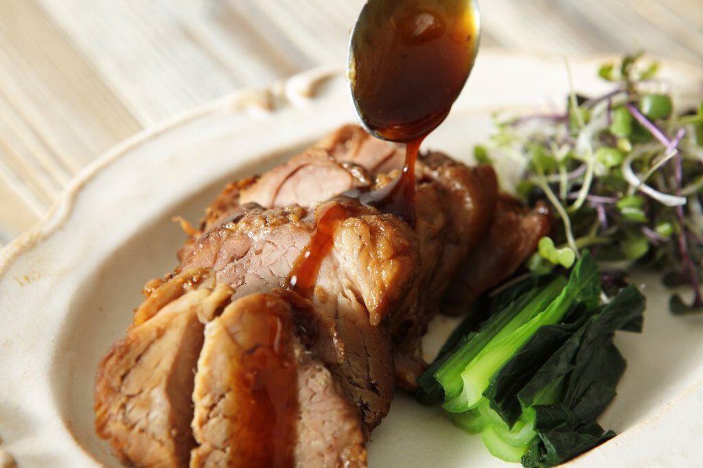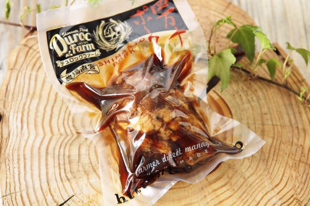 「四万十ポー ク・デュロックファーム」の旨みたっぷりの部位ウデ肉 を使用し脂の旨味をとじこめた商品。
